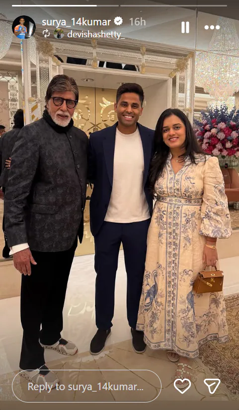 सूर्यकुमार यादव अपनी पत्नी देविषा शेट्टी के साथ अमिताभ बच्चन से मिले।